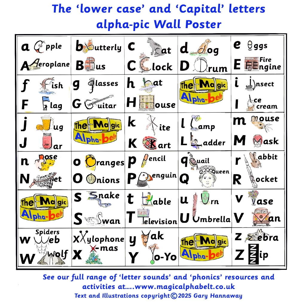 Laminated Flash cards - matching letter sounds (lower case and Capitals) to alpha-pics